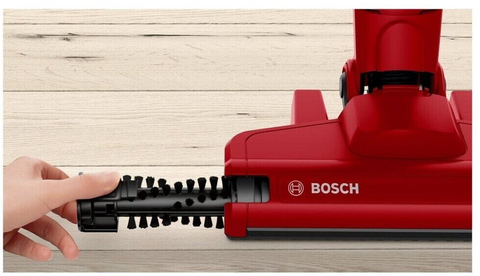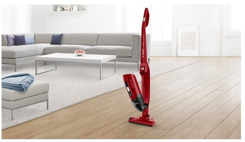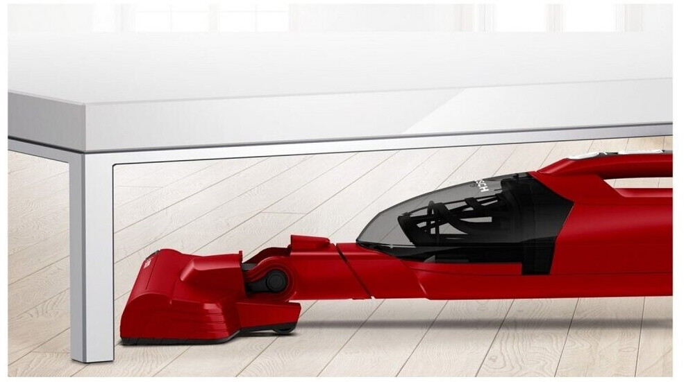 The Bosch Serie 2 BBHF214R Rechargeable Vacuum Cleaner Readyy'y 14.4V Red offers a practical 2in1 solution for flexible vacuuming. With a removable handheld unit, motorized power nozzle, and freestanding function, it ensures quick and efficient cleaning on all floors – even under furniture.