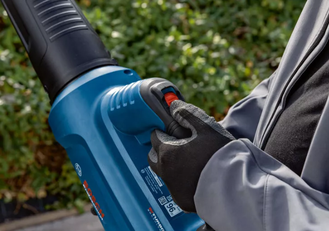 The GBL 18V-750 Professional Cordless Leaf Blower offers powerful performance with a BITURBO Brushless motor and axial fan. With an air volume of 780 m³/h and an airspeed of up to 198 km/h, it efficiently removes leaves and dirt. The variable speed control optimizes power, noise level, and runtime. Thanks to its lightweight, ergonomic design and twist nozzle, the blower ensures comfortable operation with minimal noise. Ideal for quick and effortless garden maintenance.