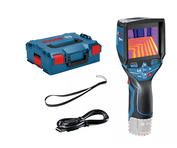 The Bosch Professional GTC 400 C Thermo camera captures and visualises temperature differences in seconds and makes it easy to document the results. With the Bosch Thermal App, measured values can be processed and shared quickly. The picture-in-picture technology superimposes detailed real and thermal images (19,200 pixels) for precise localisation of temperature differences. The dual power source system enables the use of 12 V Li-Ion rechargeable batteries or standard alkaline batteries. Ideal for insulation testing, heating system checks and locating overheated parts.