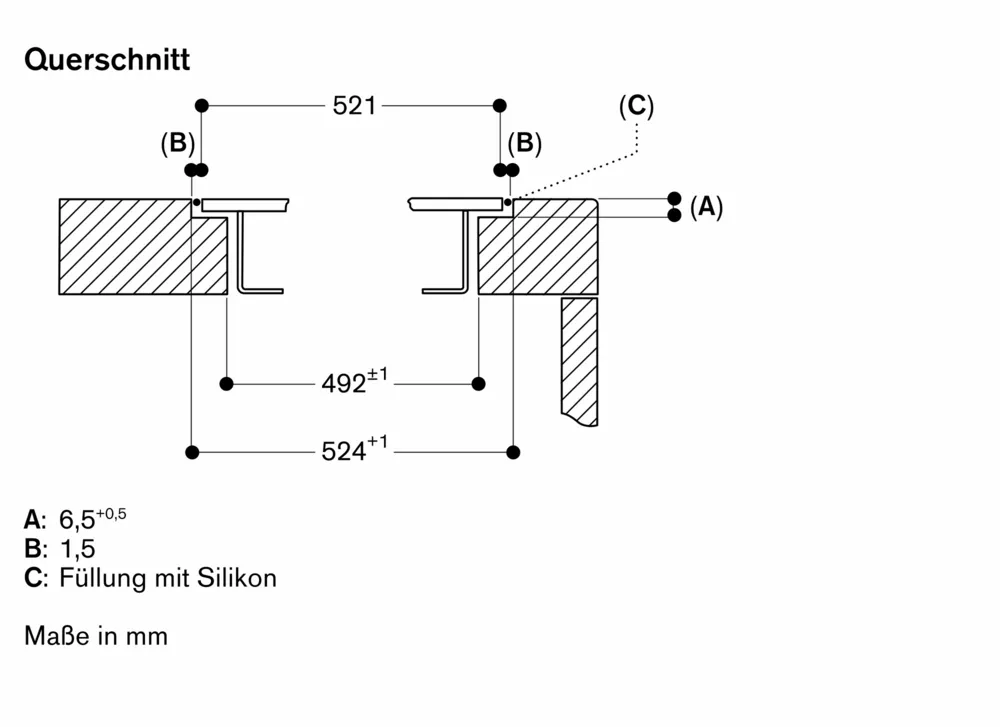 - The joint width may vary due to dimensional tolerances of the glass ceramic panel and the worktop cut-out.