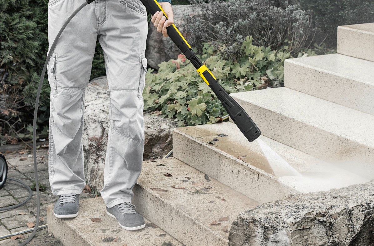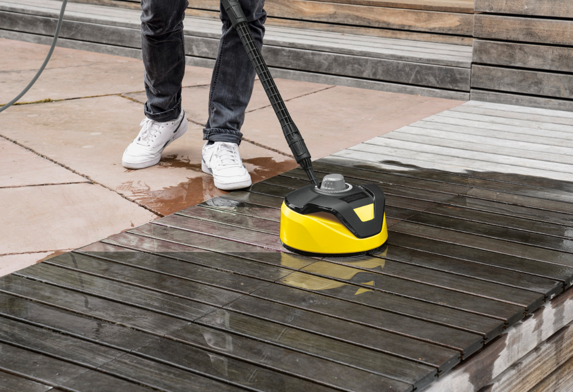 Includes Home Kit with T 5 surface cleaner and 3-in-1 stone and façade cleaner (1 l) for efficient cleaning of large areas such as driveways, patios, or house façades.