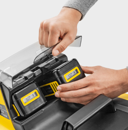 Maximum freedom when mowing – cordless, efficient, and powerful The Kärcher LMO 4-18 Dual Battery Set cordles…