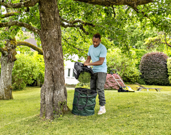 Use either the 40-litre grass catcher or mulch clippings evenly as natural fertilizer with the mulch kit. -