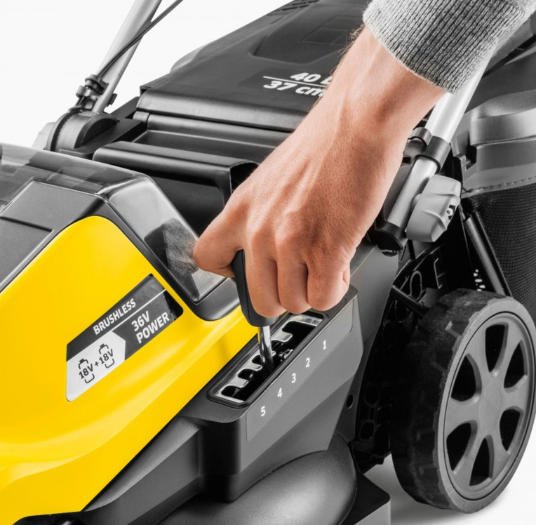 - 5-level central cutting height adjustment from 25 to 65 mm