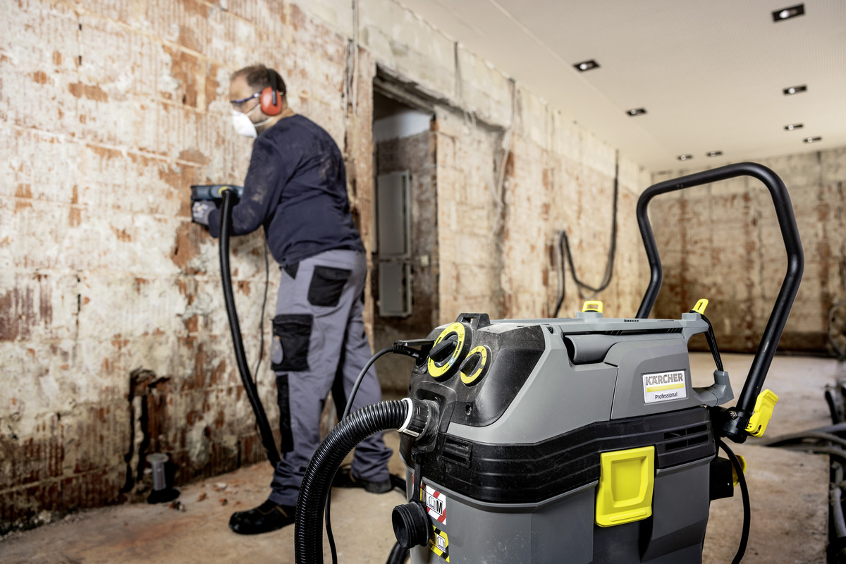 The Kärcher NT 50/1 Tact Te M ACD is a powerful wet/dry vacuum cleaner with a 50-liter container, specially designed for respirable fine dust of dust class M. The sensor-controlled Tact filter cleaning ensures efficient and low-noise cleaning with a filtration efficiency of 99.9%.