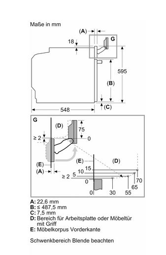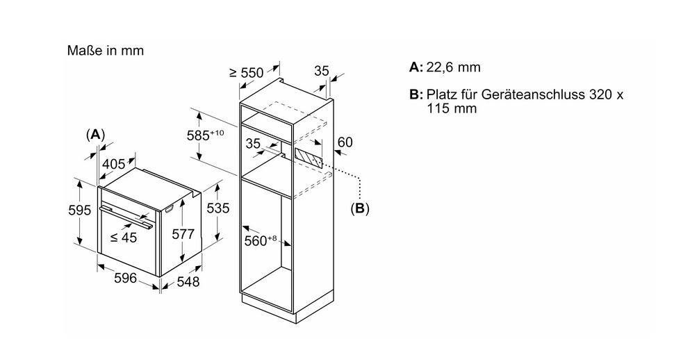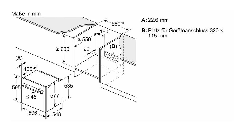 - Minimum niche dimensions for installation (H x W x D): 585-595 x 560-568 x 550 mm