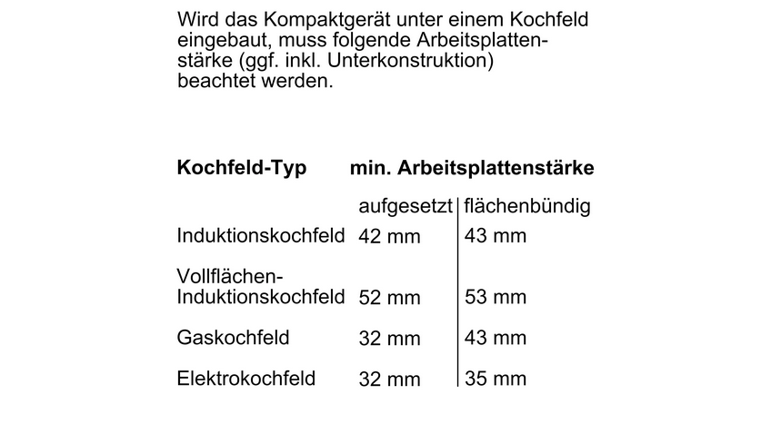 - Minimum niche height: 450 mm