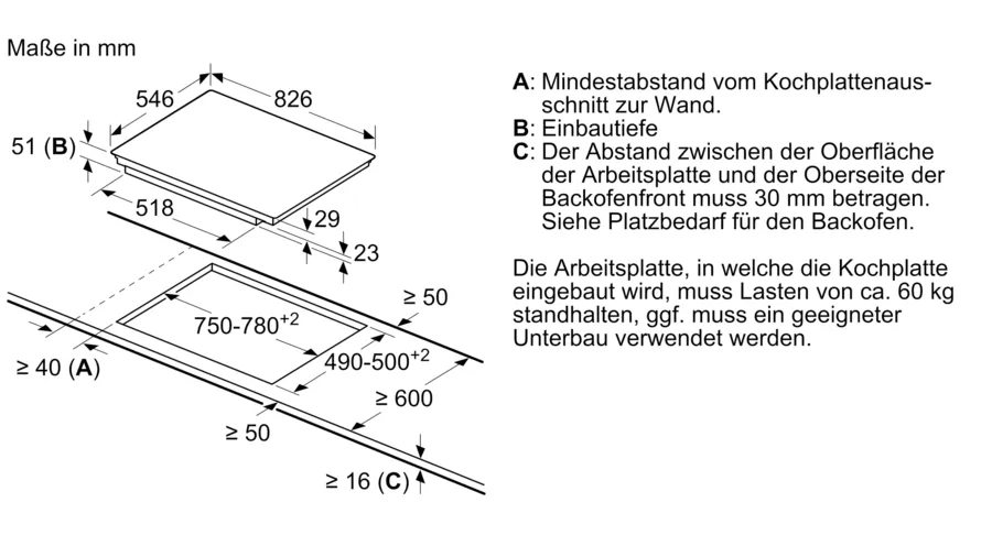 - Dimensions of the appliance: 51 x 826 x 546 mm