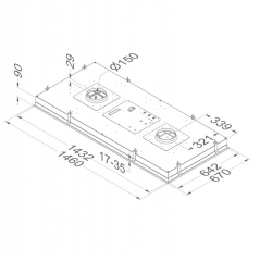 - Appliance dimensions (WxDxH): 1460 x 670 x 90