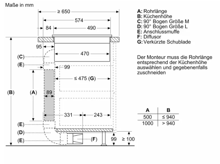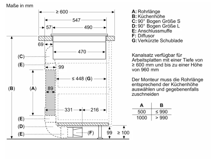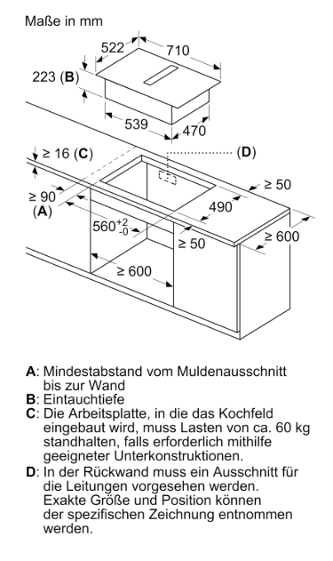 Nischenmaße für Installation (H x B x T): . 223 x 560-560 x 490-490 mm