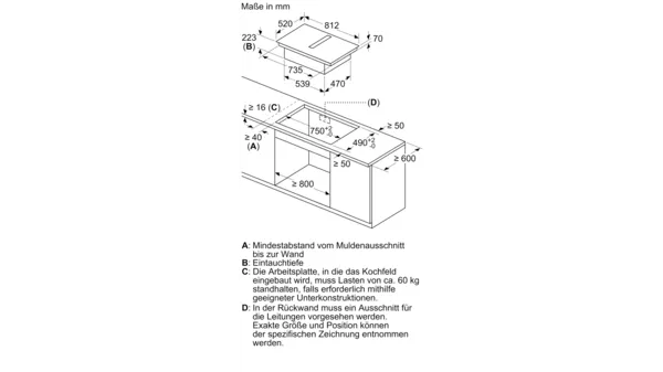 - Dimensions of the appliance: 223 x 812 x 520 mm